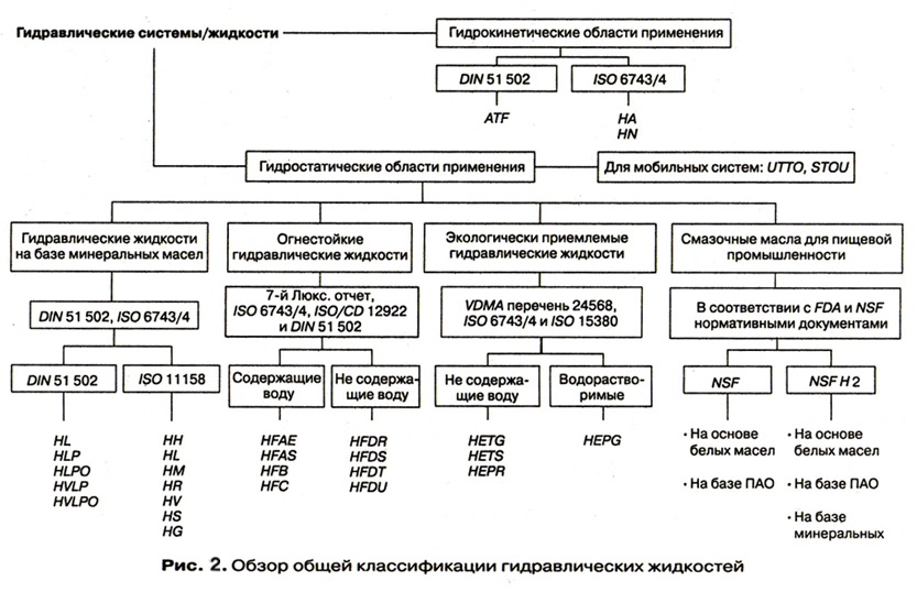 • STOU и UTTO универсальные гидравлические масла для применения в мобильных системах. Гидравлические масла, применяемые в гидродинамических устройствах, могутбыть отнесены к ATF, жидкостям для конвертеров и муфт сцепления (см. главу 10). На рис.2. показаны различные категории гидравлических жидкостей и основные области их применения.