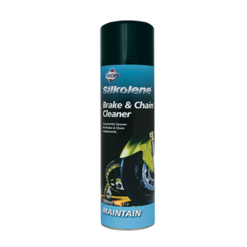 FUCHS Silkolene BRAKE & CHAIN CLEANER- специальное средство для ухода за тормозными суппортами и цепью мотоцикла. Помогает поддерживать на высоком уровне эффективность тормозной системы и уменьшает потери полезной мощности на преодоление силы трения цепи. Убирает грязь, пыль, смазку, масло, протекшую тормозную жидкость с тормозных дисков, суппортов и барабанов, а также эффективно очищает цепь от любых налипаний.
