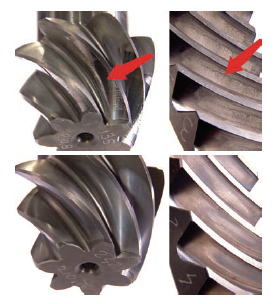 1. Окисление вызывает загустение смазочного материала и провоцирует образование отложений на деталях. Использование качественных тракторных масел позволяет избегать накоплений продуктов окисления, благодаря чему улучшается общая производительность, повышается защита передач и уменьшается шум тормозов. (См. Рис.1 - деталь с образованием продуктов окисления и аналогичная деталь при использовании качественного смазочного материала)