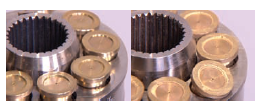 3. Следующей ответственной задачей тракторного масла является нейтрализация воды, которая вредна для сальниковых уплотнений, клапанов и желтых металлов в гидравлических насосах и клапанах. Разъедание уплотнений вызывает утечки масла. На рисунке 3 представлена эрозия на желтом металле гидравлического насоса, вызванная смешиванием воды с UTTO низкого качества.